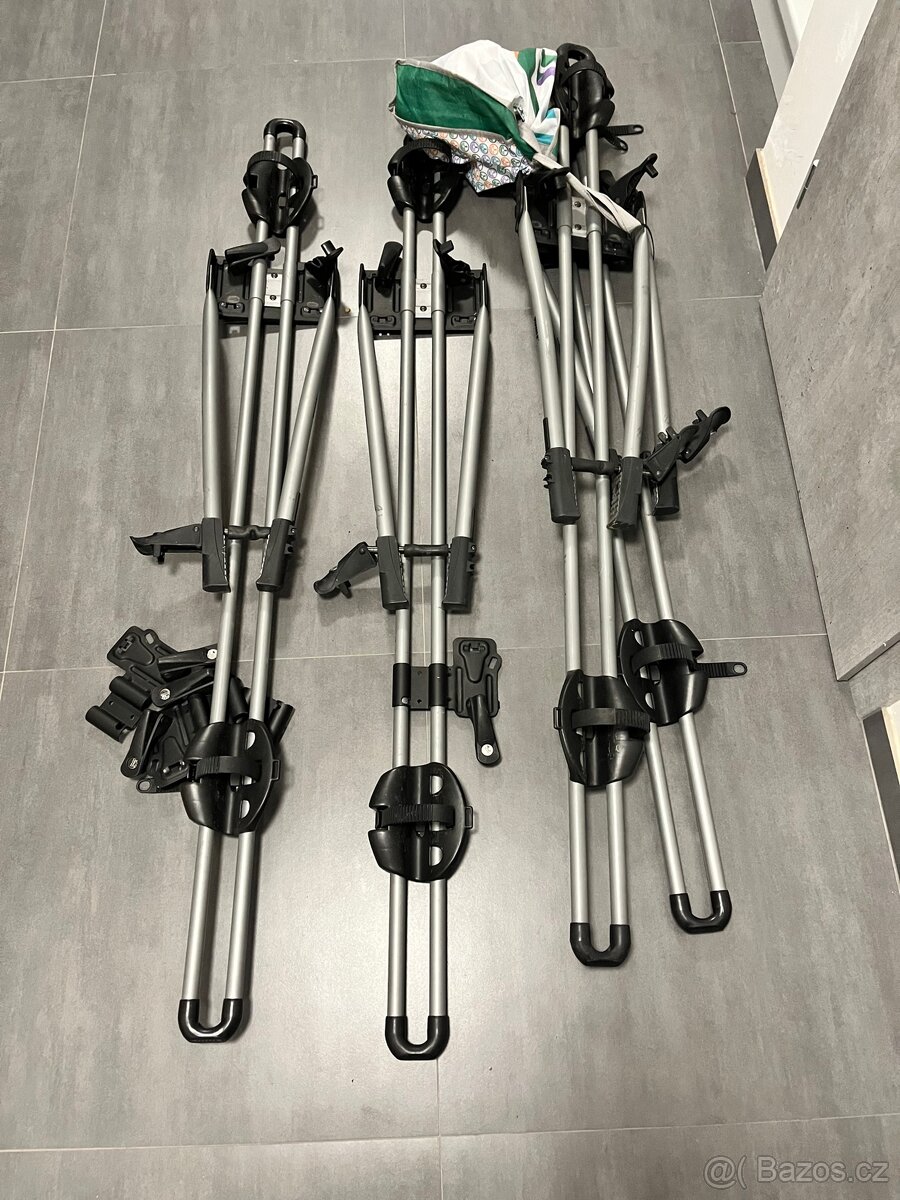 Prodám 4x střešní nosič na kolo Thule, vše funkční, klíče na zamknutí, adaptéry. Cena komplet 3000 Kč nebo 1000 Kč kus.