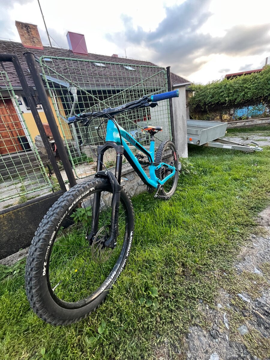 Canyon Torque modelový rok 2019. Jsem druhy majitel. Oproti sériovému osazení lepší brzdy Shimano SLX, řazení shimano xt deore, zadní ráfek DT Swiss FR 560 Na kole se jezdilo, tudíž se najde sem tam nějaká oděrka. O kolo bylo vždy náležitě starano.