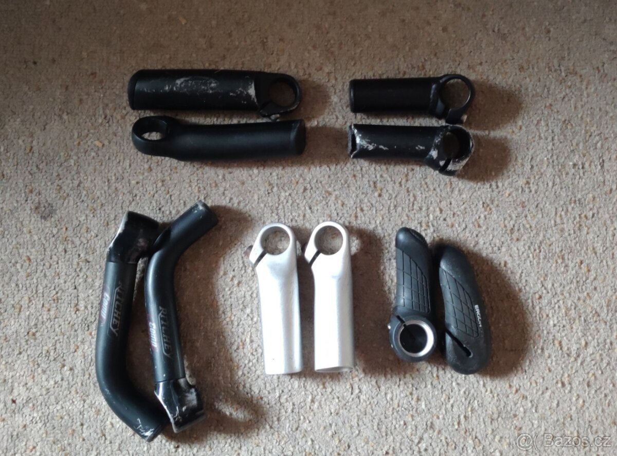 Rohy řídítek v různém stavu, více či méně poškrábané.