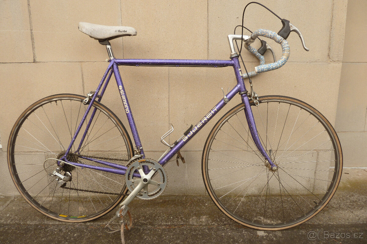 Prodám parádní závodní silničku post. na rámu Gudereit(Německo)Cr-Mo 590mm (parametry obdobné Favorit F1 Spec.)Téměř veškeré vybavení Shimano 105, ráfky Mavic GP-4, sedlo Turbo, řidítka(440) představec ITM, převody 2x7, velmi málo jeté.