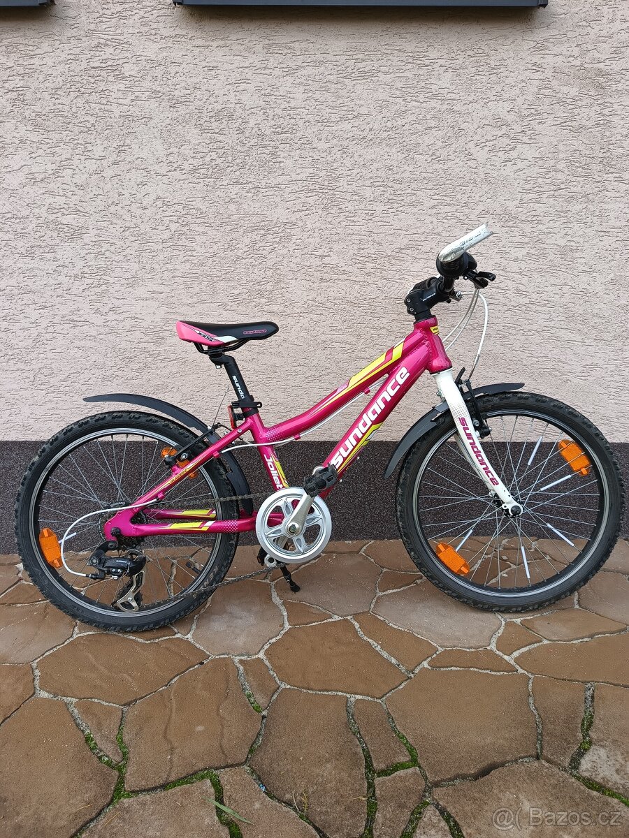 Dívčí 20"" kolo Sundance Joliet je postavené na hliníkovém rámu 6061 HT s pevnou vidlicí. Kolo je osazeno přehazovačkou Shimano Altus a v-brzdami Winzip. PC 6.990,-