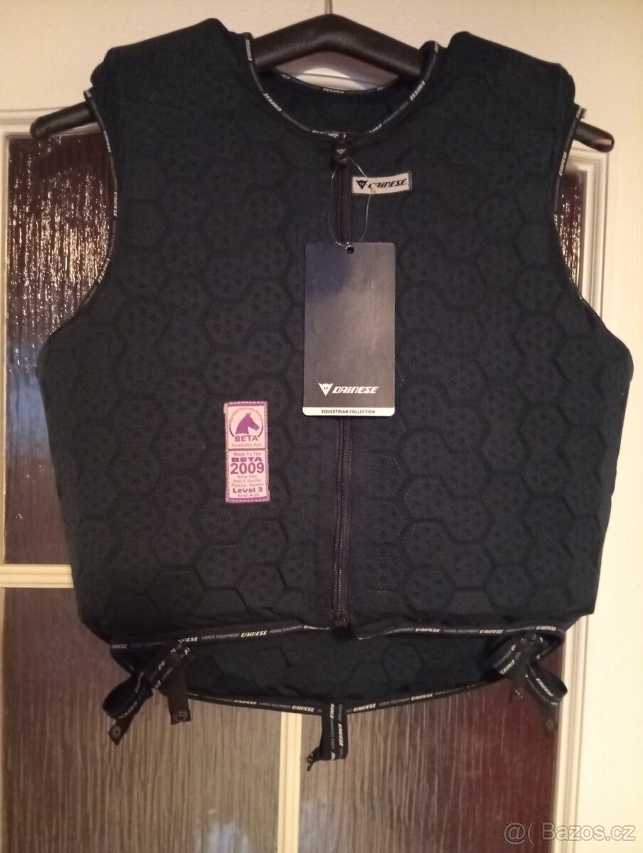 nabízím levně novou luxusní jezdeckou bezpečnostní vestu zn.Dainese, velmi kvalitní, vel.XL Lady/děts.XL, rozměry viz foto, z paměťové pěny - přizpůsobí se tvaru těla, možnost vyzkoušení na Praze 1, nikdy na koni, cena 2490,-