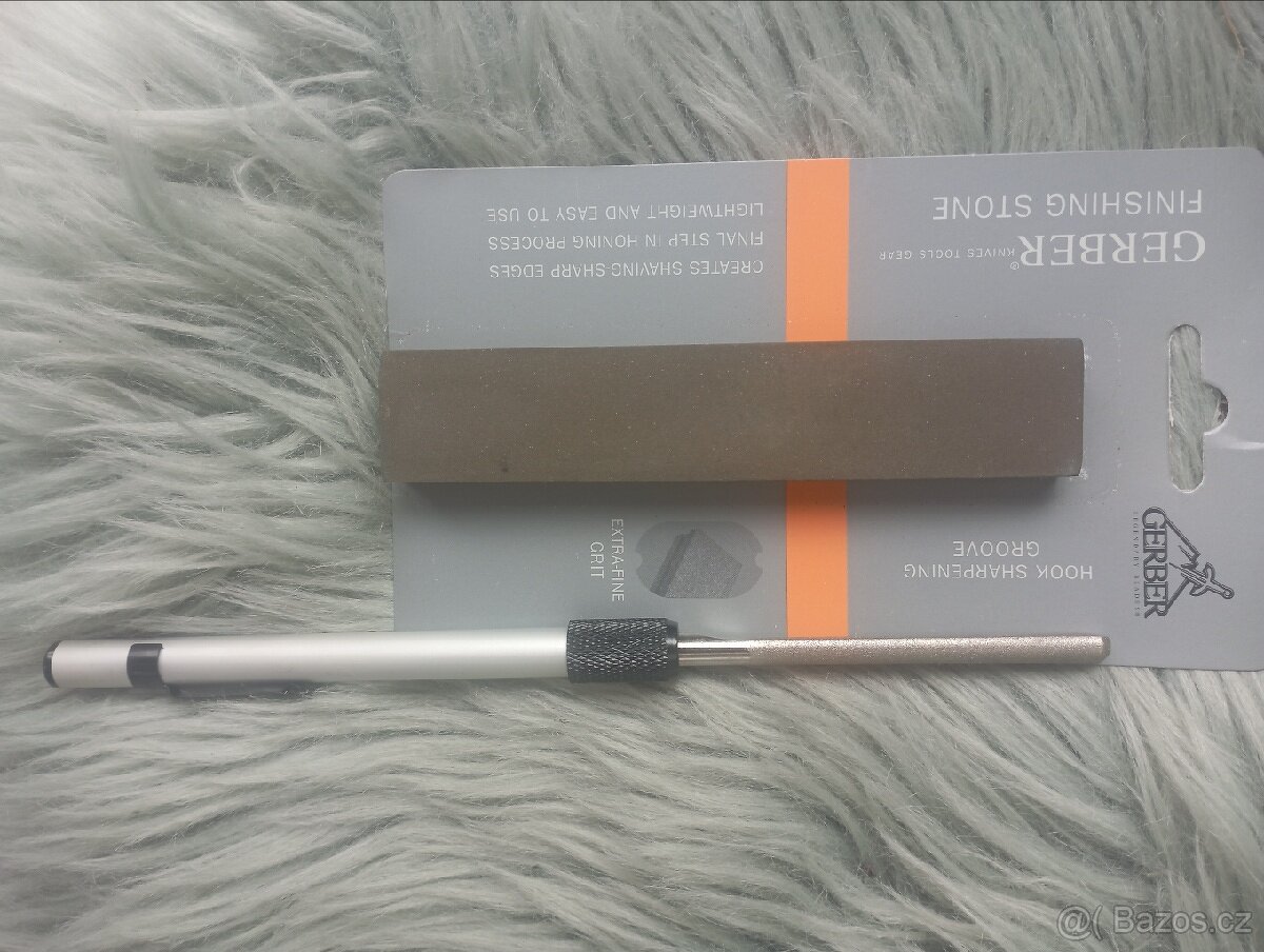 Sada brousku Gerber USA, luxusní brousky, vyrobeno v USA, jemná povrchová úprava na finální dotažení ostří, oboustranný brousek, speciální na dotažení finálního ostří, po straně (na boku brousku) - drážka na broušení rybářských háčků, žiletek a jiných různých předmětů, ... Velikost 12,5 x 2,4 x 1,2 cm, (nenošené / nepoužité), ... Vhodné pro ostření všech kapesních zavíracích nožů, pevných nožů, nářadových nožů, kuchyňských nožů a příslušenství, ... Brousí i velmi tvrdé materiály ocelí, včetně damašku, ... 100% stav nových! Nenošeno! Nikdy neostřeno! Nesehnatelné! Oreginál Gerber/Fiskars. Druhý brousek diamantová ocílka, půlkulaté, ... Oreginál GERBER USA! PC 1.100,- Kč - cena: 550,- Kč + doprava /pošta nebo zásilkovna převodem na účet 79,- Kč, na dobírku 150,- Kč/