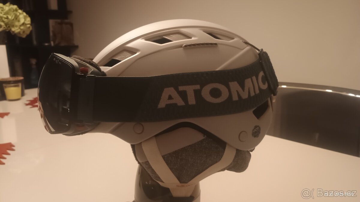 helma bílá Salomon velikost S + brýle Atomic. Možno i jednotlivě. Stav zachovalý