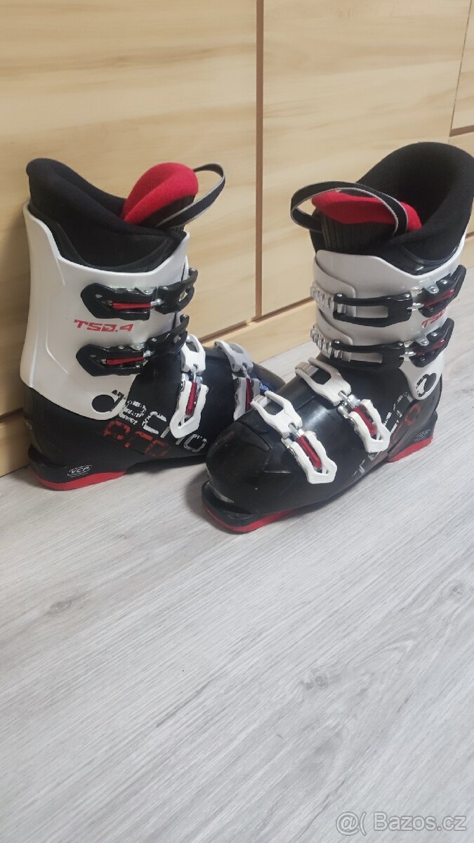 - Značka TecnoPro, model T50.4 – juniorské sjezdové lyžařské boty se čtyřmi přezkami pro lepší fixaci nohy.