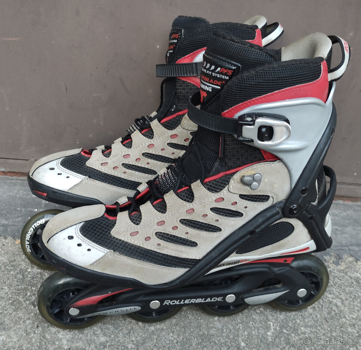 Prodám pánské kolečkové brusle Rollerbrade. Zachovalé udržované. Velikost 43. Kolečka o průměru 84 mm. Brusle mají vyndávací poloměkké boty s ventilačním systémem.