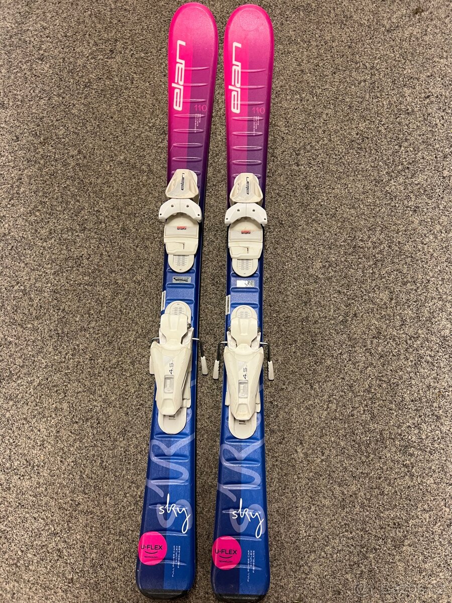 Prodám dětské dívčí lyže ELAN - Sky. Délka 110cm. Vázaní: Elan 4,5 din - do cca 45kg. Nastavitelné na jakoukoliv velikost boty. Lyže jsou po servisu. Velmi zachovalý stav. Možné poslat.