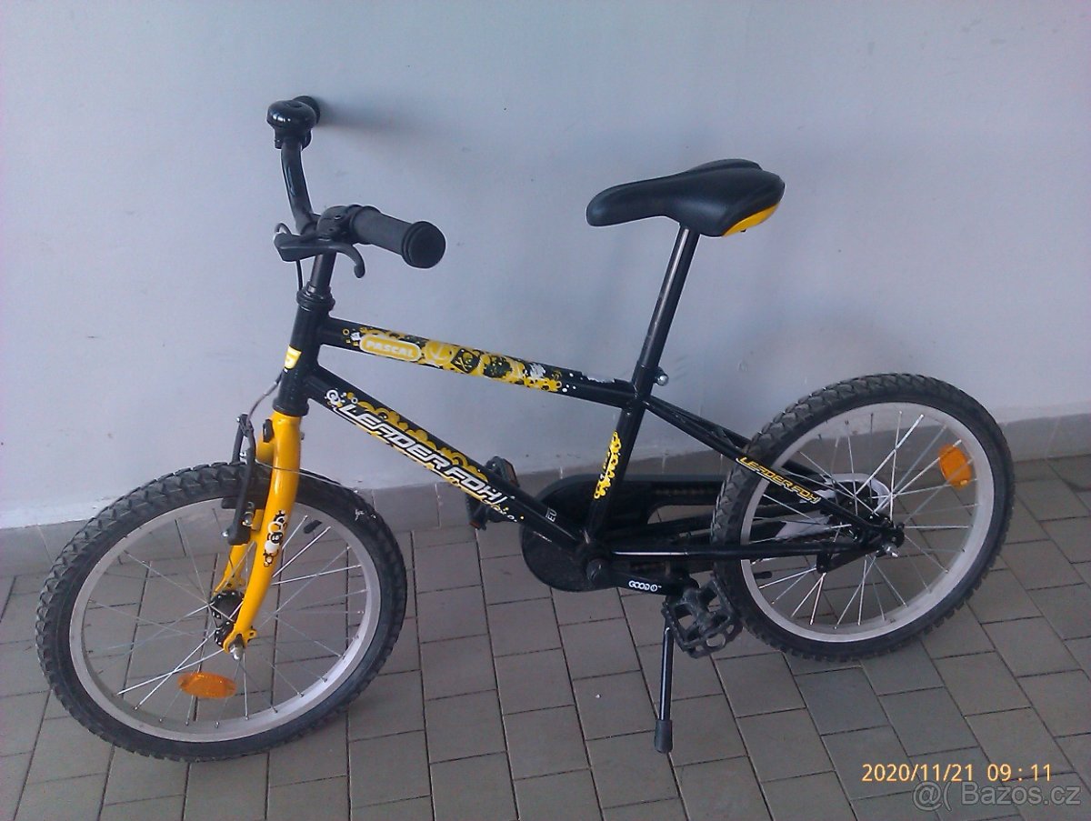 18“ dětské kolo LEADER FOX, černožluté, + zvonek zdarma. Předání v Praze - Černý most.