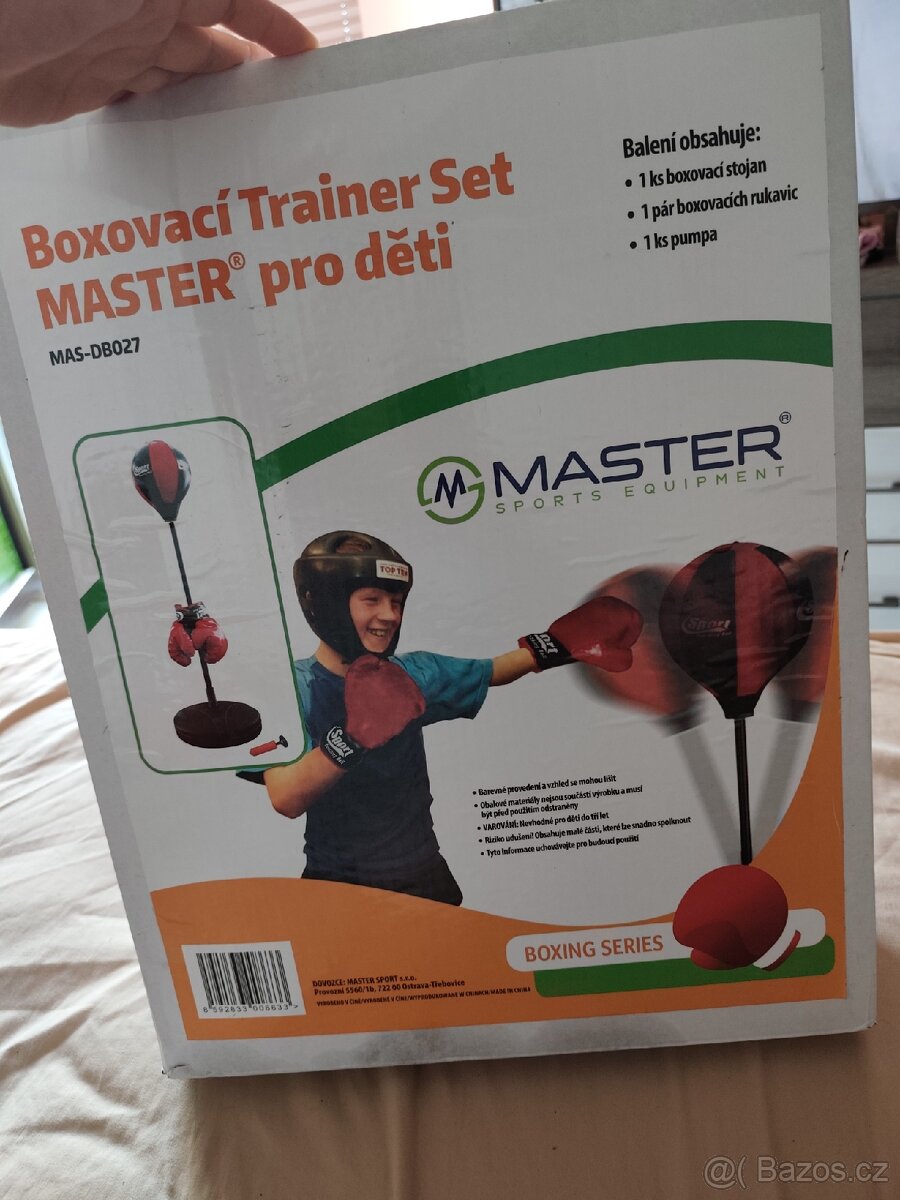 Boxovací Trainer Set MASTER vhodný pro děti. Set je pro vnitřní i venkovní použití. Těžká PVC základna je pro naplnění vodou nebo pískem. Výhodou je i nastavitelná výška od 100 do 120 cm. Technická data: boxovací set pro děti plastová základna pro naplnění pískem nebo vodou PVC nafukovací boxovací hruška nastavitelná výška: 100 - 120 cm pro vnitřní i venkovní použití součástí balení jsou dětské boxovací rukavice. Nové, nepoužité
