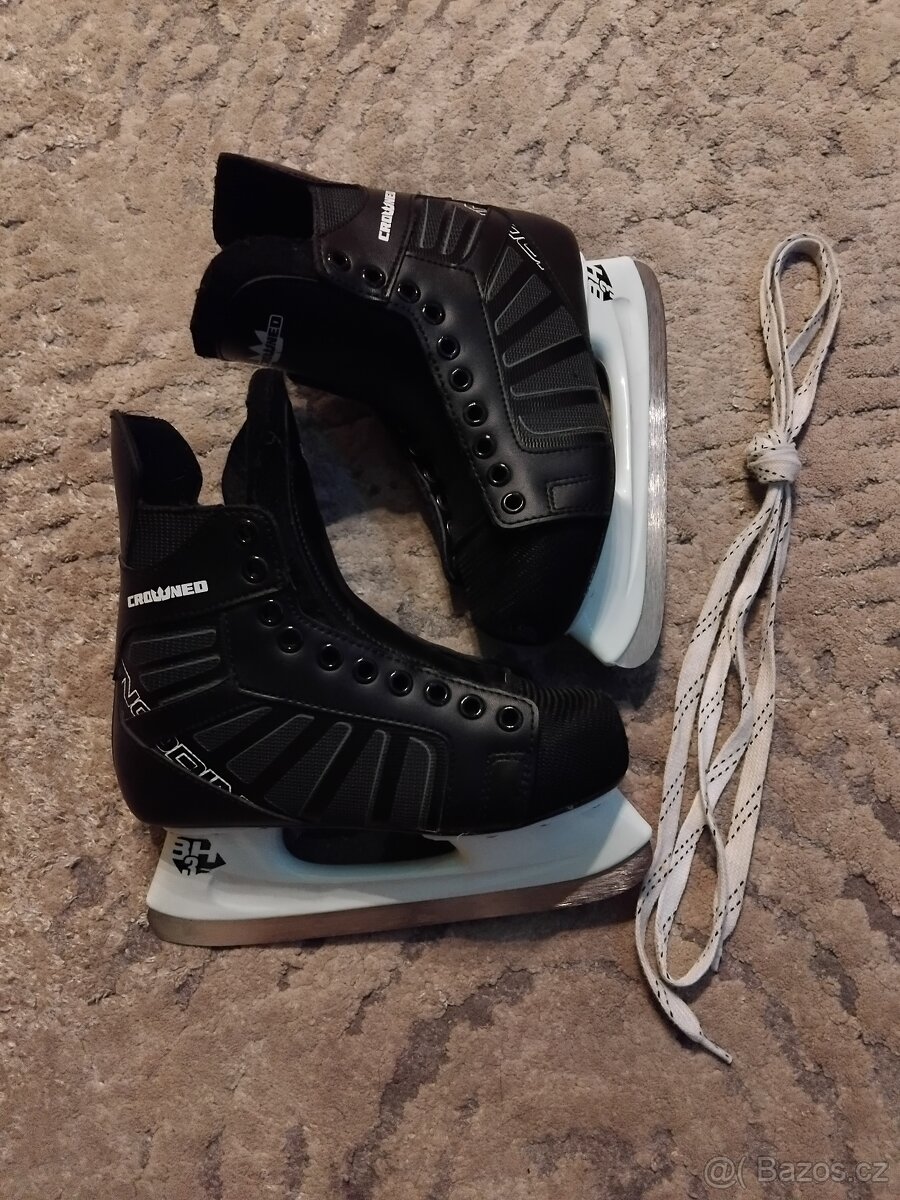 Lední brusle - kanady - [28.12. 2025]Lední hokejové brusle pro kluky CROWNED SHOOTER nastavitelná velikost, díky které brusle rostou s nohou vašeho dítěte.