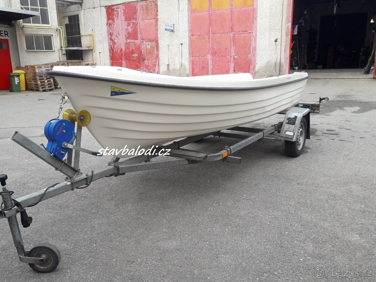 dvě schránky pro uložení věcí, odrazová guma kolem lodi, lavka uprostřed pro veslaře, důlky pro vesla, podložky pod motor, 2x vyvazovací oka, 4x relingi (madla) Pro dálkové ovládání lze člun opatřit řídící konzolí. Cena člunu bez motoru a řídící konzole 58 600,- Kč