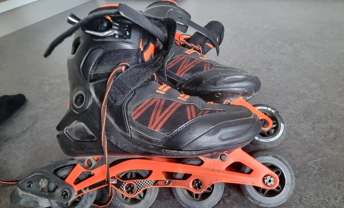 Brusle Rollerblade rychloupinaci - [29.12. 2025]Inline brusle č. 42 s rychloupinacim mechanismem - nutná oprava - prasklé lanko. Hlinikovy ram,kolečka 90 mm.Jeté jednu sezonu.