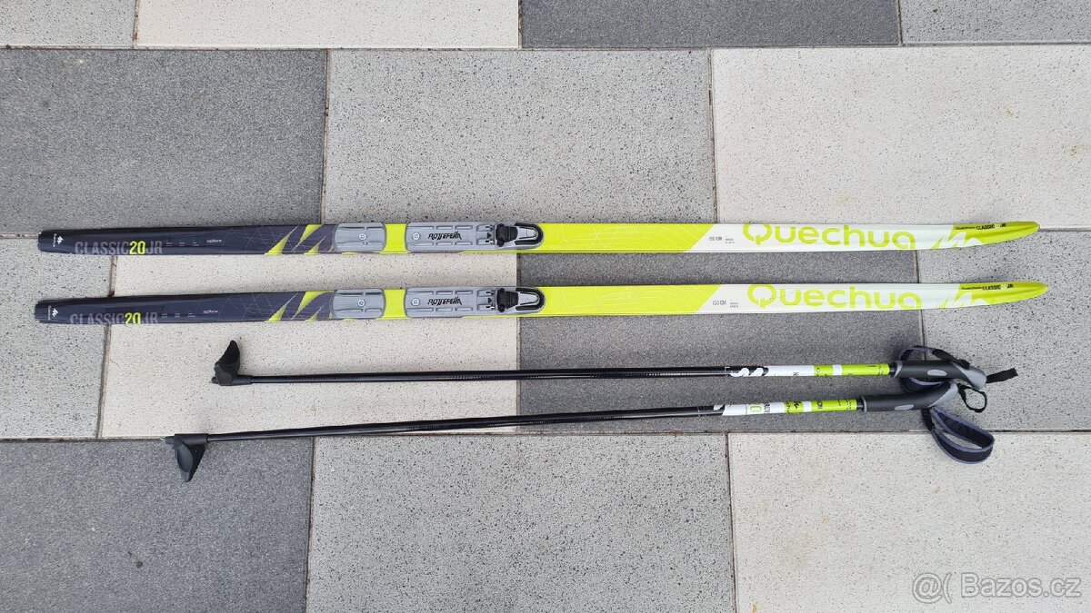 Prodám dětské běžky Quechua Classic20JR, délka 150 cm. K tomu i hůlky 120 cm. Cena 1600 cm. Pouze osobní odběr.