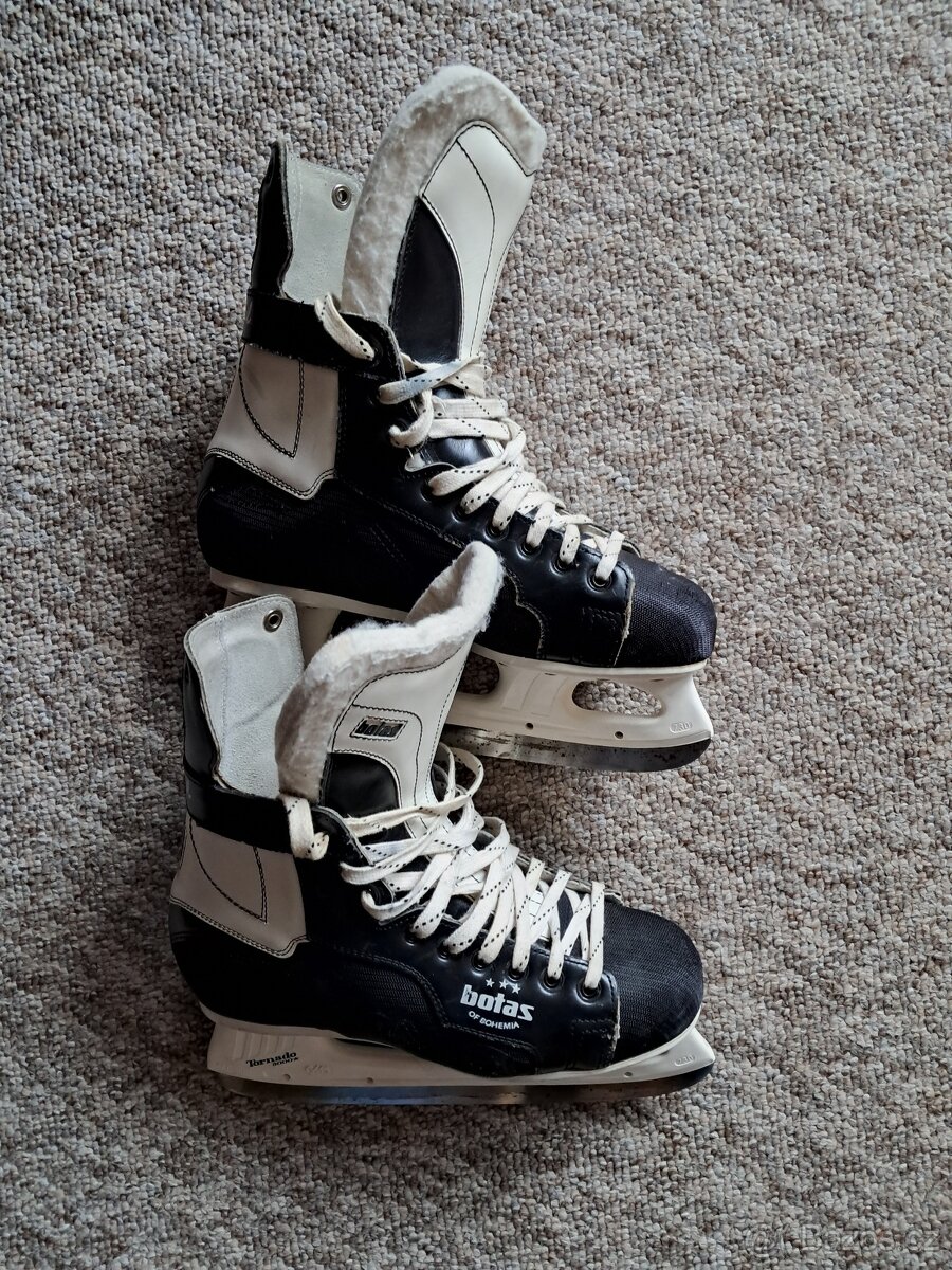 Prodám hokejové brusle BOTAS Profesional vel. 7-8 černé velmi zachovalé, nabroušené. 600 Kč.