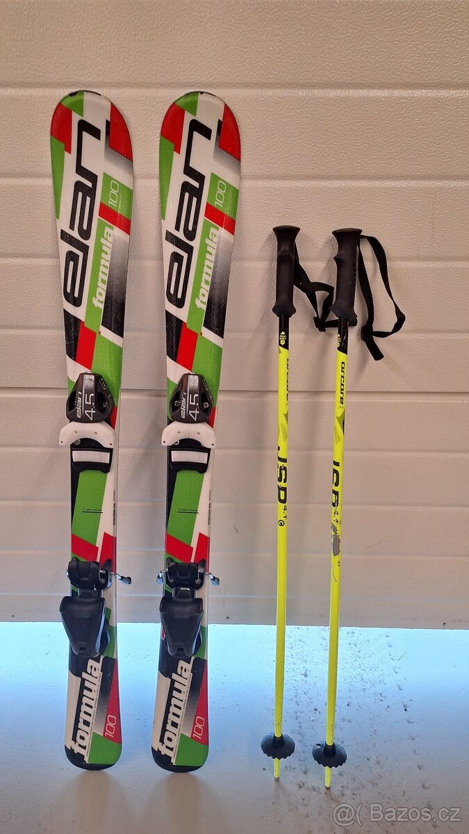 Prodám - Dětské sjezdové lyže Elan Formula 100 cm, + zdarma hole Arcore JSP 4.1 85cm, použité - stav viz foto, osobní předání ihned Příbram nebo po platbě předem mohu zaslat službou Zaslat.cz (+200 kč).