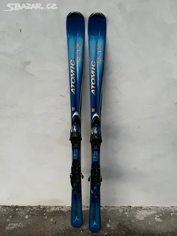 Sjezdové lyže Atomic s posuvným vázáním Atomic, délka lyží 150 cm, pěkný stav lyží a skluznice