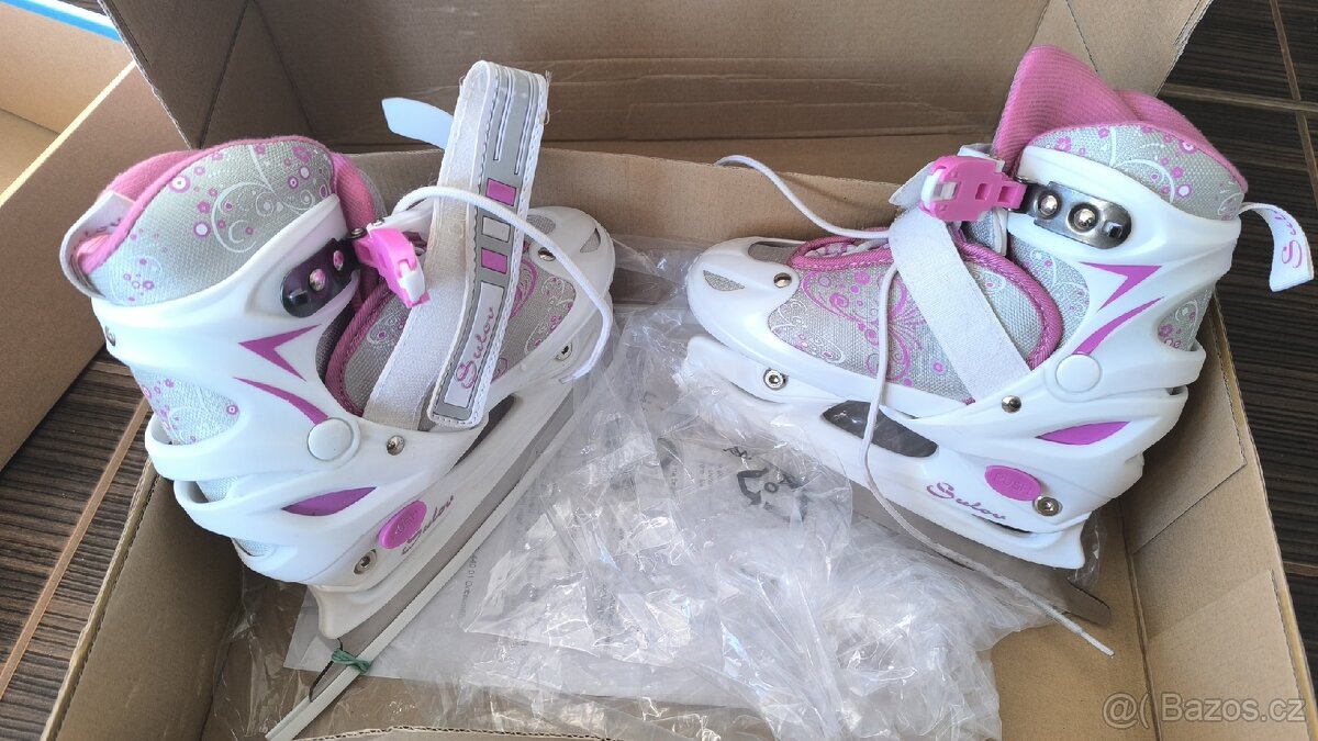 NASTAVITELNÉ DÍVČÍ LEDNÍ BRUSLE VEL. 29 - 32 - [1.1. 2026]Nastavitelné dívčí brusle, velikost 29 - 32. V pěkném stavu, jen drobné "provozní" oděrky. cENA 290,-Kč, Praha 5 Barrandov