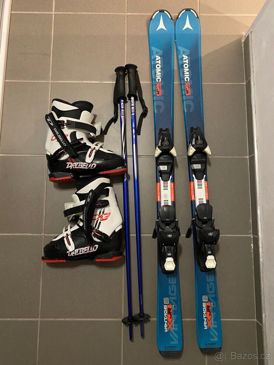 Nabízím použité dětské lyže Atomic o délce 130 cm včetně lyžařských bot ve velikosti 23–23,5 (275 mm).