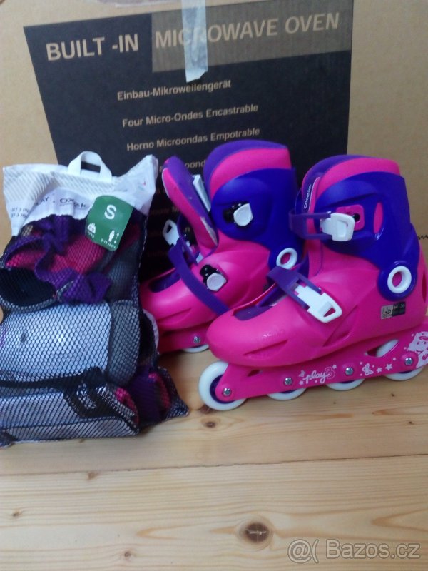 Prodám kolečkové brusle,stavitelná velikost 34-36, velmi málo používané, jen dvě odpolende a chrániče na nohy, lokty a zápěstí, nové, 8-15 let.