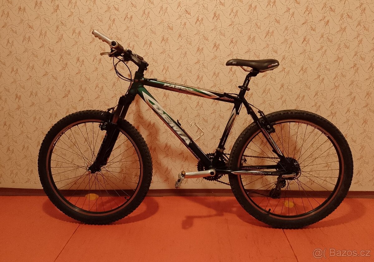 Horské kolo Ravo - [2.1. 2026]Horské kolo Ravo, dobrý stav, potřeba na klasickou údržbu, brzdy seřízeny cca 3 roky zpět-od té doby nepoužíváme. Trochu poškozené sedlo-vůz. Foto