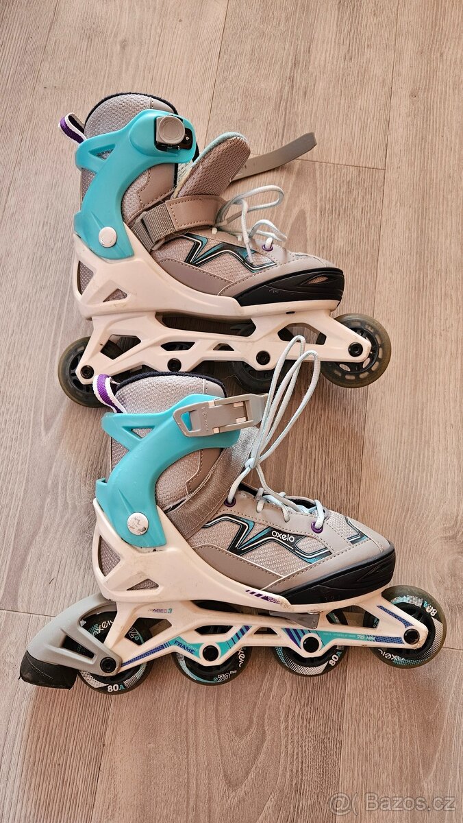 Dívčí inline brusle - [3.1. 2026]Prodám dívčí inline brusle bílomodré barvy, délka stélky 24 cm. Brusle jsou použité, místy poškrábané, ale jinak v dobrém stavu a funkční. Cena 500 kč. Platba hotově při převzetí.