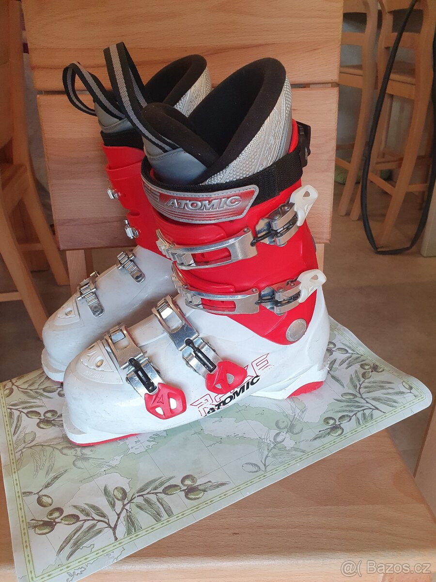 Prodám velmi zachovalé lyžařské boty ATOMIC Race vel. 25,5-26. Lyžáky mají čtyři nastavitelné kovové přezky + řemínek. Jak vnitřky bot, tak i spodní nášlapové plasty jsou ve velmi dobrém stavu. Cena 480 Kč. Osobní prohlídnutí a vyzkoušení v Praze u metra stanic Prosek, Letňany, Střížkov nebo Černý Most, Brandýs nad Labem a okolí, případně jinde dle dohody. Nezasílám!