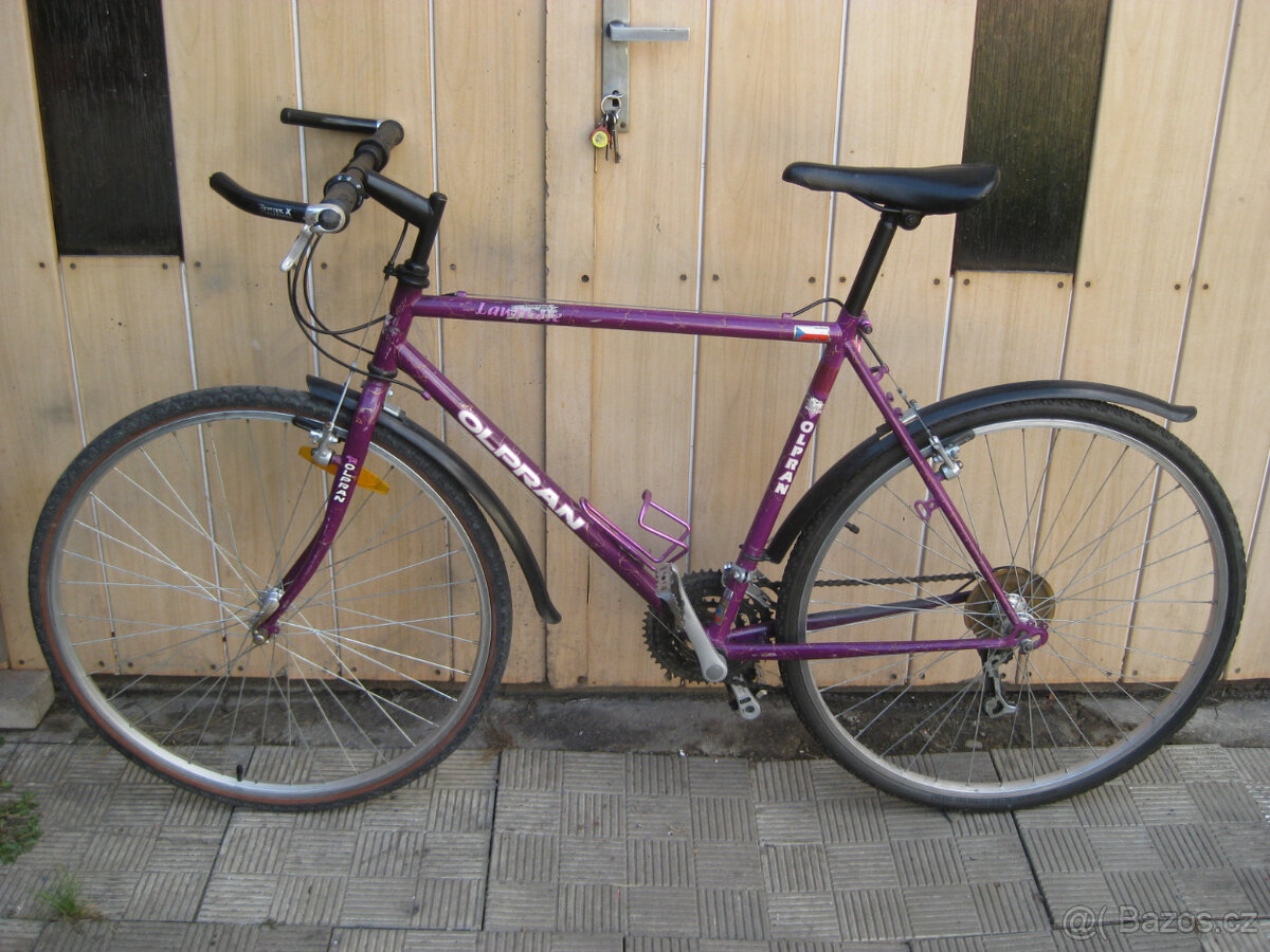 Trekové kolo Olpran ve slušném,plně pojízdném stavu. Rám vel.21" kola vel.28" převody3x6 osazení Shimano,blatníky.Odběr Tovačov. Platí do smazání.