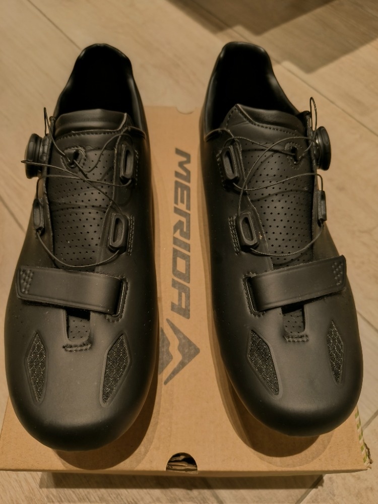 Prodám silniční tretry Merida. Měl jsem je jen párkrát na noze. Vel.44. Necítím se v nich, nesedí mi.