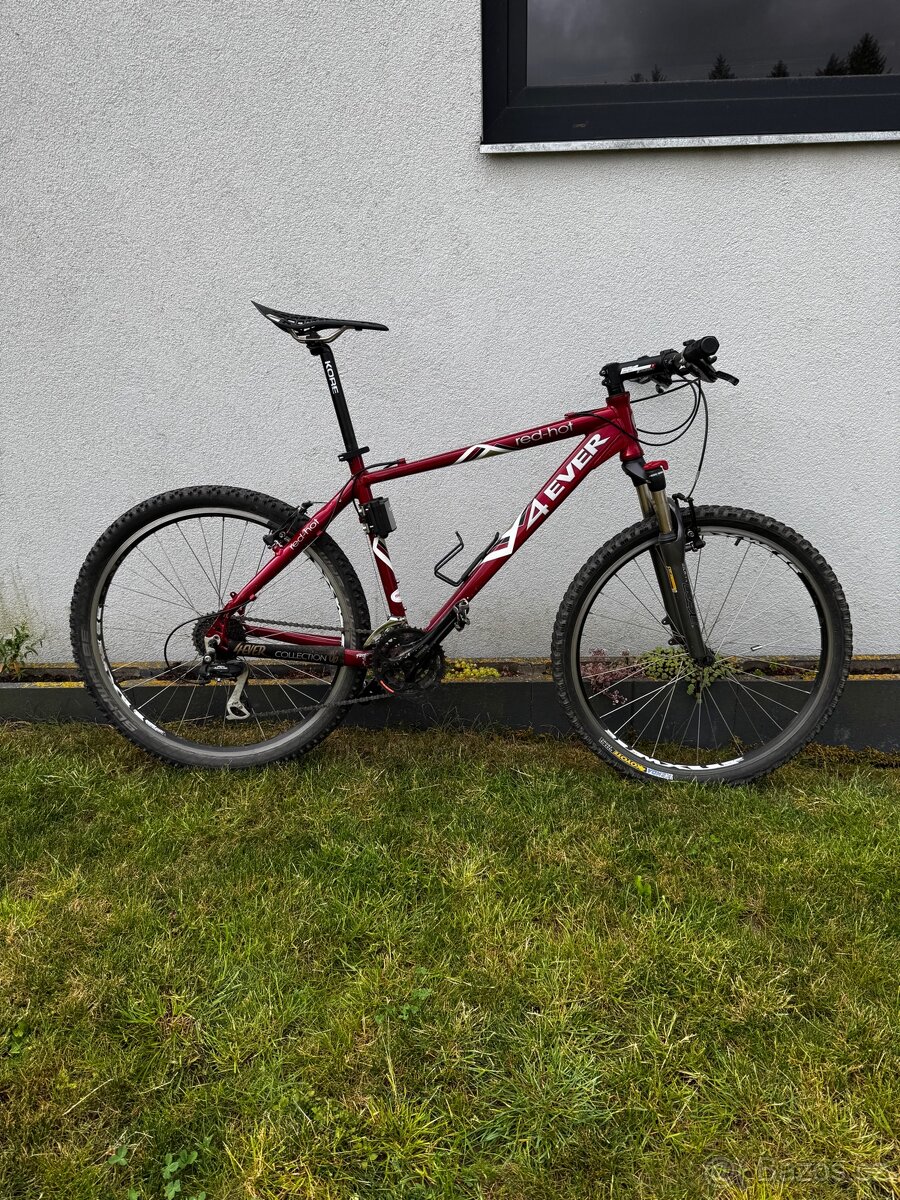 Prodam horske kolo 4 EVER red-hot, hlinikovy ram velikost L, odpruzena vidlice RST, razeni Shimano Alivio 3x8, komponenty FSA