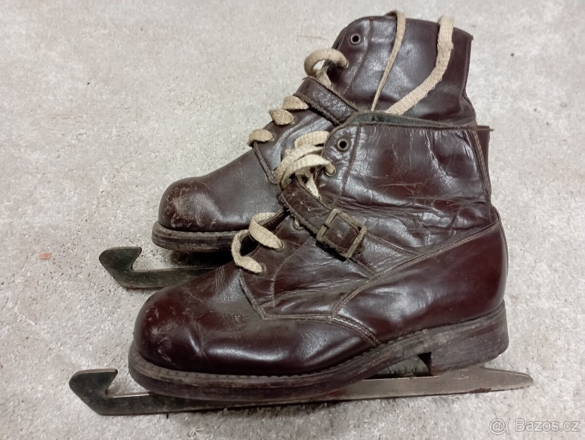 Retro brusle dívčí (dětské) - [28.1. 2026]Prodám dívčí lední retro brusle z cca 70-80. let.