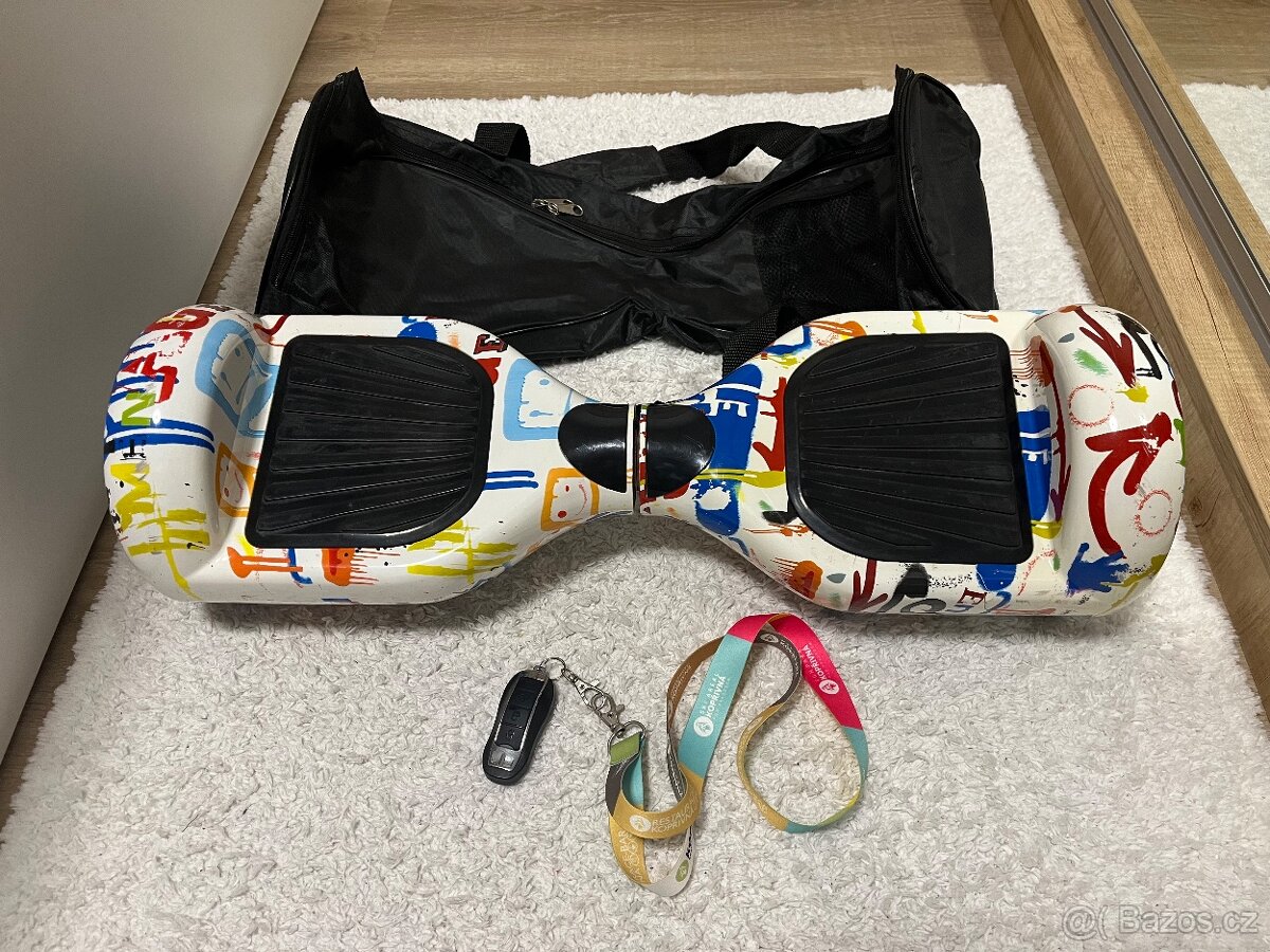Prodam Hoverboard Graffiti Gyroboard a koly 6,5 palce vc.tasky a dalkoveho ovladani.Pouze osobni predani na trase Vyskov-Brno,Slavkov,Mlada Boleslav