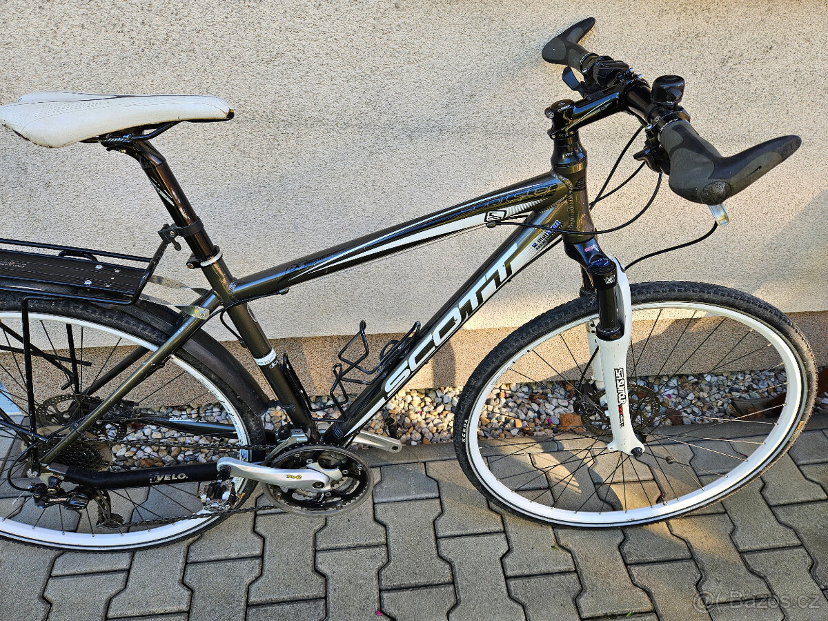 Prodám trekingové kolo Scott (Alloy 6061) vel. rámu M. Odpružená přední vidlice, kotoučové brzdy, nášlapné pedály. Osobní odběr v Čelákovicích.