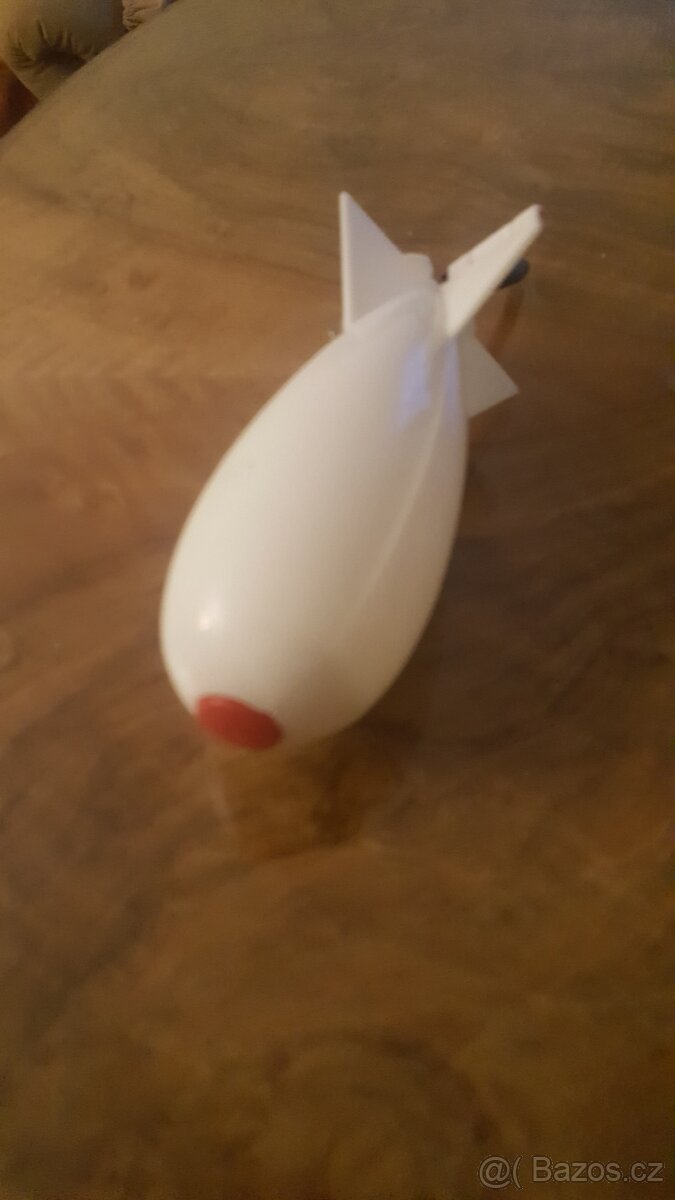 Zakrmovací raketa-nové zboží v délce 15cm a průměru 5,5cm.Raketa se otevírá při nárazu o vodní hladinu.Na konci je opatřena obratlíkem.Mám více kusů.Zásilkovnou za 89
