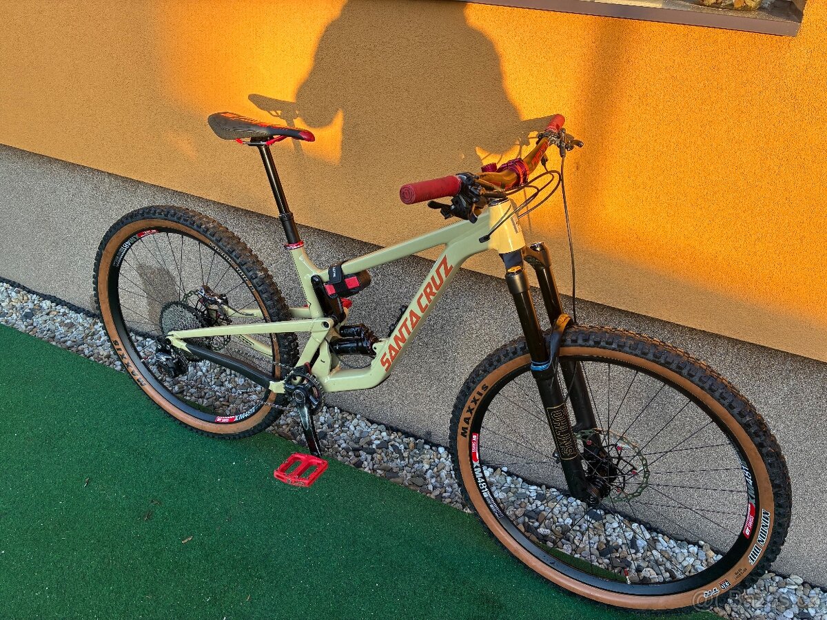Santa Cruz ma karbónový rám, riadidlá a kľuky, je to najvyššia výbava na RaceFace kolesách s DT 350 nábojmi a 36T ratchet.