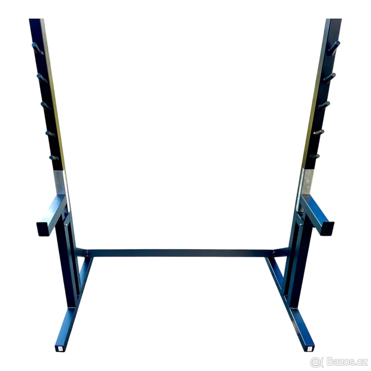 Se svými praktickými rozměry je vhodnou volbou do domácích posiloven - vejde se i do garáží nebo sklepů s nízkými stropy. Konstrukce je vyrobena z jeklu 50x50x2. Výška 150cm šířka 130cm