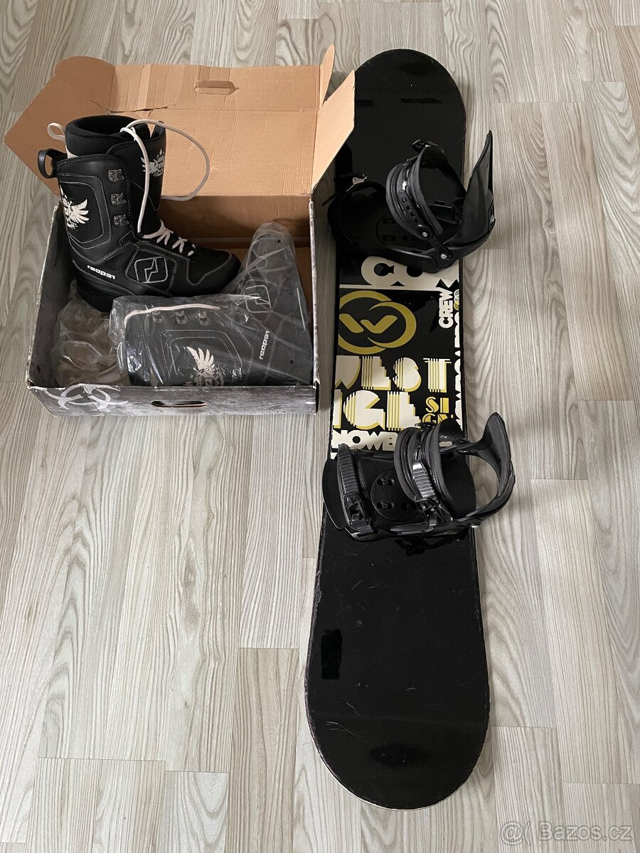 Dámský snowboard, vázání, boty - [28.1. 2026]Snowboard F2 Venus, 150 cm. Vázání Rossignol. Boty odpovídají velikosti 38. Všechno ve velmi dobrém stavu.