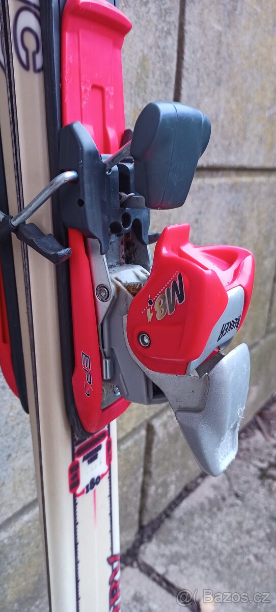 Starší lyže s vázáním, pro začátek asi ještě dobrý ...175 cm