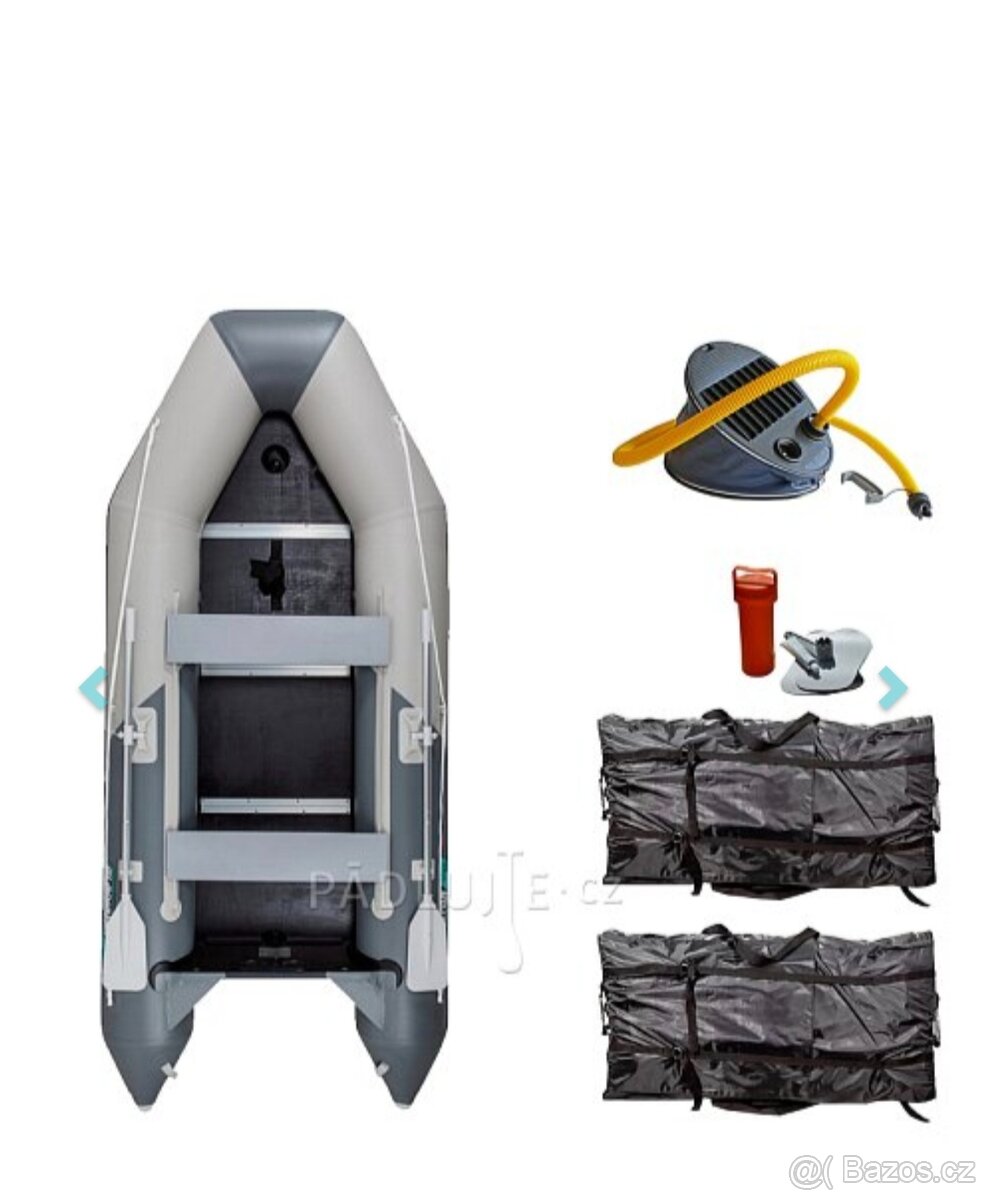 Prodám gumový nafukovací člun pro 4 osoby fotka je jen ilustrativní je vyfouknutý a uloženy a k tomu benzínový motor vše za 9000