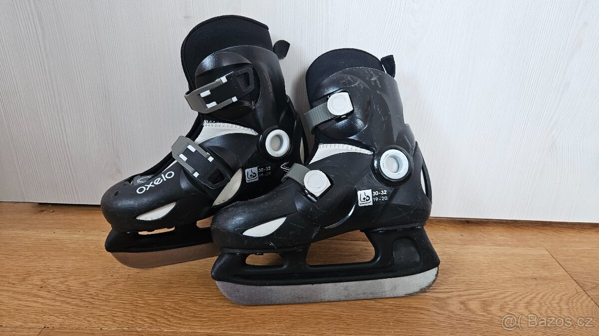 Prodám dětské zimní brusle Oxelo / Oxylane ICE PLAY 3, velikost nastavitelná EU 30–32 (19–20 cm). Pohodlná vnitřní botička, jednoduché zapínání na přezky. Brusle jsou používané, ale v dobrém stavu, pouze drobné kosmetické oděrky, ostří zachovalé.