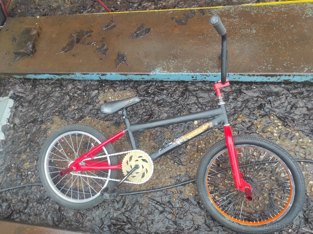 Bmx má nové ložiska,nové zadní kolo,nový řetěz,kola trošku házej.Kolo je jinak ježděné.bmx má celkem sjeté pláště.kolo má 2 pegi