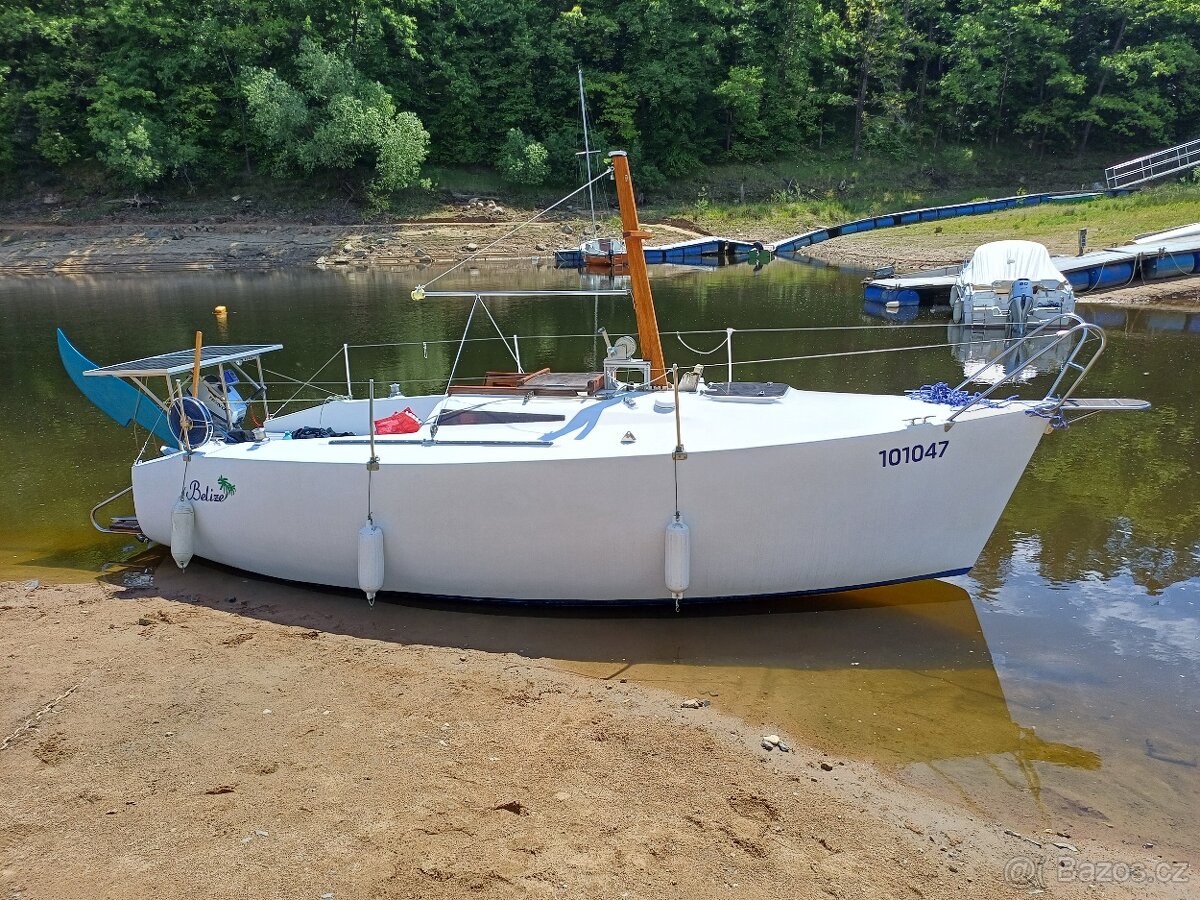 Prodám kajutovou dřevolaminátovou loď. Délka 6m, s čeleňem a badenplatem 7m, šířka 2,35m. Jolovitý typ. Lze provozovat jako motoráček a nebo plachetnice. Stěžeň, kosatka na rolfoku, hlavní plachta, gena. Vytahovací kýl cca 350kg. Loď má krásný dřevěný interiér, projektová dokumentace k lodi, rok stavby 1992. Mnoho úložného prostoru pod lůžky, 4 místa na spaní, loď je otypována pro 6 osob. Kuchyňka s dřezem s tekoucí vodou, pod dřezem nádržka na odpadní vodu. Vytápění lodi bufíkem na naftu 5kw. Kompresorová šuplíková lednice 27l 12V/24V/220v pod schůdky. Trakční baterie Varta 190Ah. Solární panely 180W na rampě na zádi lodi. Břehová přípojka 220V, loď je ale energeticky soběstačná, není potřeba se připojovat. Kompresorová siréna, podsvícení zadi lodi modrým LED světlem, halogenové světlo. Navigační světlo s dálkovým ovladačem, prostorný kokpit s umělým šedo-černým teakem. Echolot Lowrance s GPS. Koupací plošinka z teaku se sklápěcími schůdky. Všechny kovové prvky z nerezu. Nerezová kotva navijákem, 50m popruhu a 5m nerez řetězu. Lana, fendry. Motor Honda 5Hp s dobíjením, r.v. cca 2014, nádrž na benzin 12L. Vlek Ohlmeier Bielefeld, jednonápravový 1300kg.