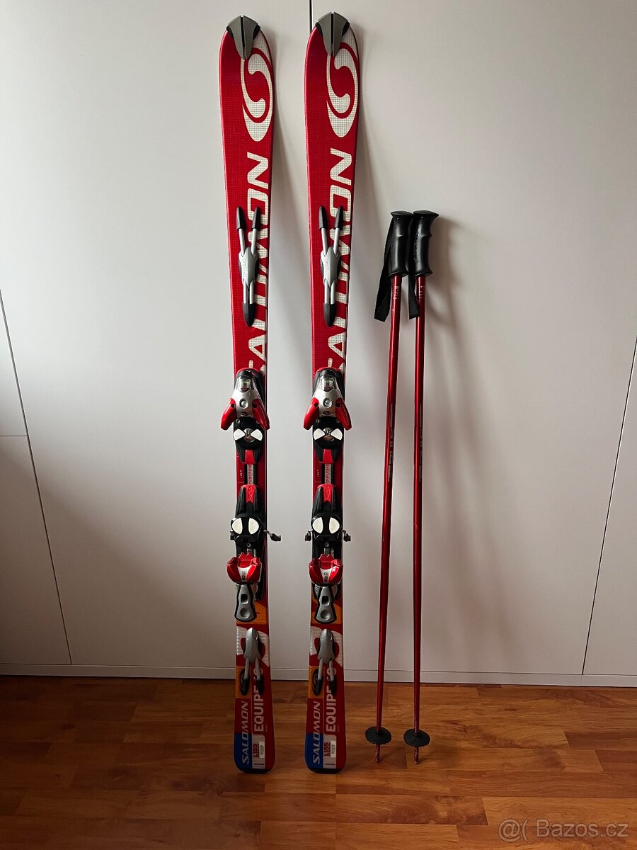 Nabízím carvingove lyže Salomon Equipe 10 monocoque s podložkovým vázáním Salomon S910. Délka lyží 155cm radius 13m. Jako bonus přidám hůlky Atomic. Cena bez hůlek 1.200,- Kč.