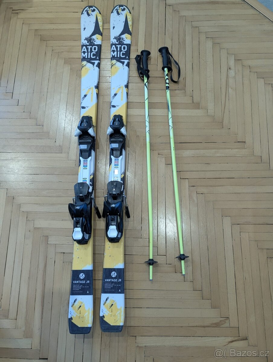 Juniorské lyže Atomic, ideální pro začátky v dobrém stavu s vázáním. Délka 140 cm, rádius 13 m.