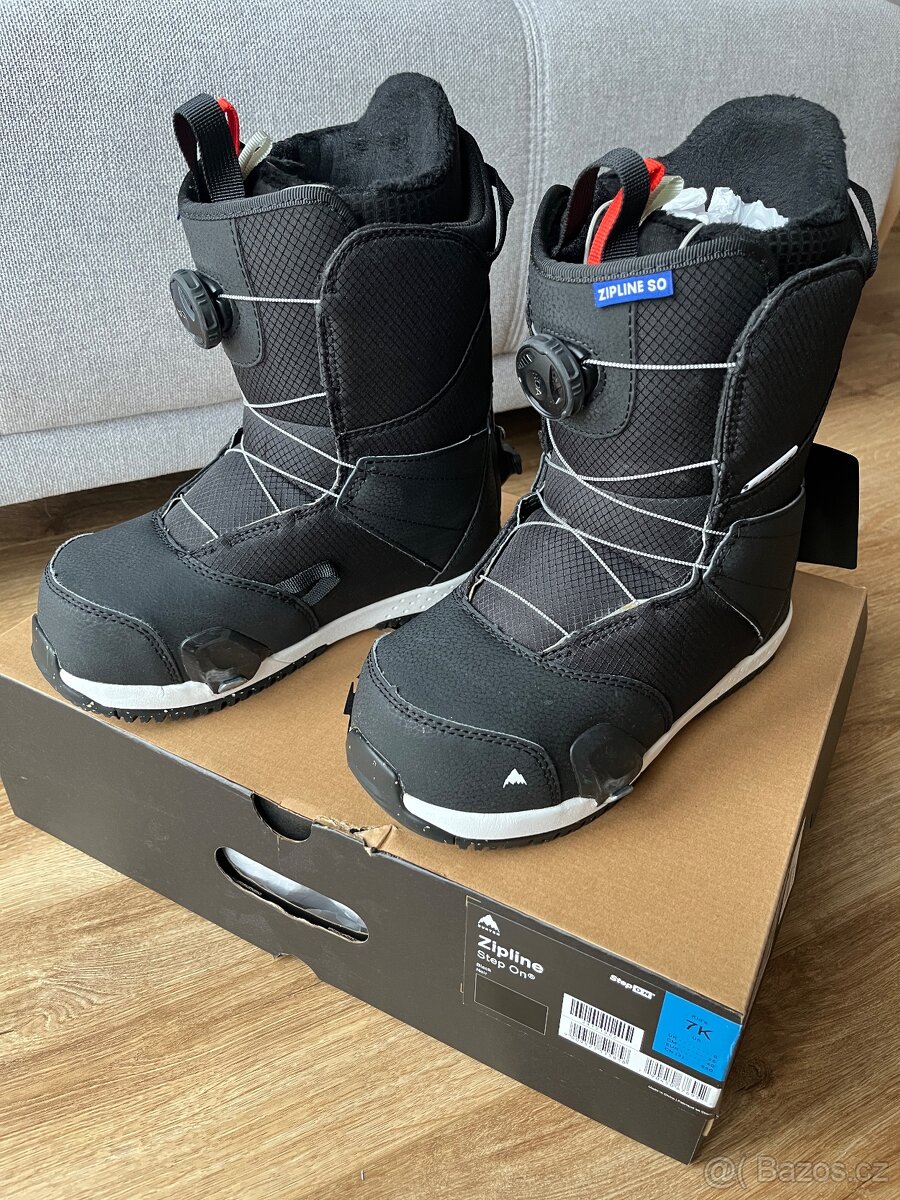 Prodám dětské boty na snowboard Burton Zipline Step On Kids ve velikosti EUR 40 (US 7K, CM 25). Kupované nové a stále jsou doslova jako nové párkrát na svahu.
