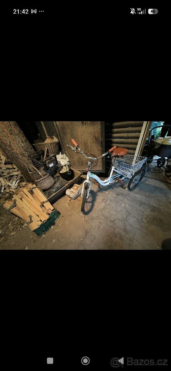 Tříkolka je jako nová pouze složena a vyzkoušena kolem baráku. Přední a zadní brzda včetně nákupního košíku.