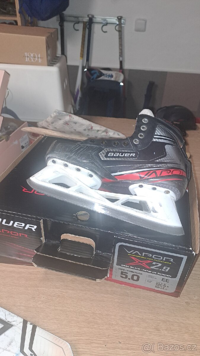 Brankářské brusle Bauer NIKE Vapor XXX, vel. 5EE, EUR38,5 - [9.2. 2026]Použité brankářské brusle Bauer Nike Vapor XXX, vel. 5EE, (širší provedení), EUR38,5. Jsou v pěkném stavu, jedná se o starší model br. bruslí, semtam mají nějakou drobnou uděrku, ale jinak nejsou nikde více poškozené. Jsou vhodné pro někoho, kdo má m ...