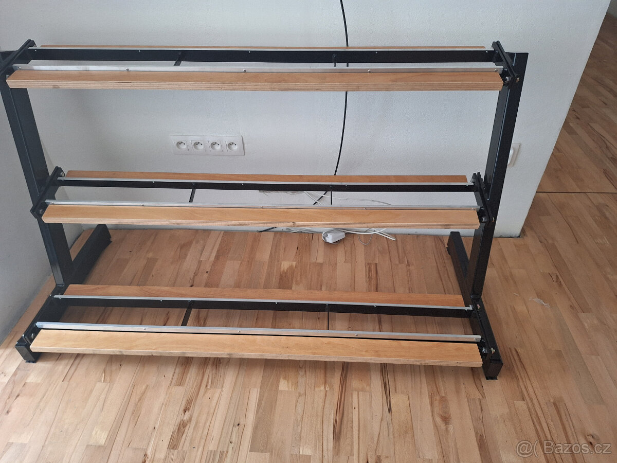 Stojan pro kettlebelly - [9.2. 2026]Prodám stojan pro ocelové kettlebely. Vyrobeno ze silnostěnného materiálu. Police jsou osazeny překližkou z tvrdého dřeva pro měkký dosed kett. Konstrukce jsou brokovány a opatřeny práškovou barvou.