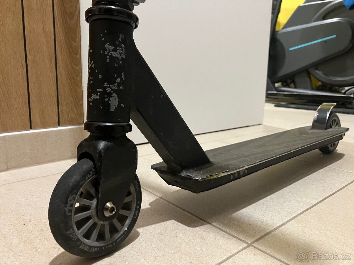 Freestyle koloběžka - [11.2. 2026]Prodám freestyle koloběžku. Dlouho leží v garáži má zatuhlá ložiska a drobné oděrky z používání. Nejlépe osobní předání.