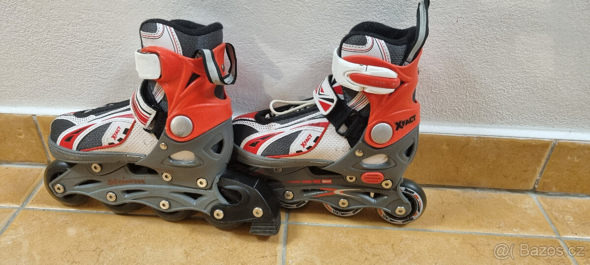 Nabízím kolečkové brusle disponující změnu velikosti bot. Vhodné pro dítě od 4 do 7 let.