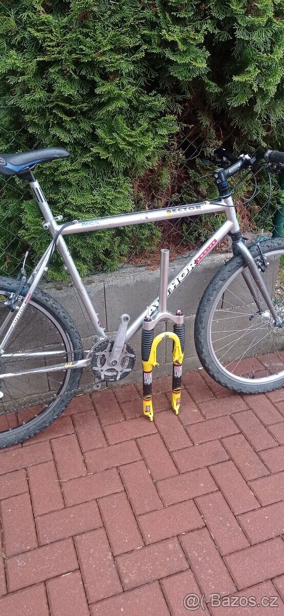 Prodám MTB Author Sector s odpruženou vidlicí Rock Shox Judy SL. Výbava XT a LX pláště Ritchey.